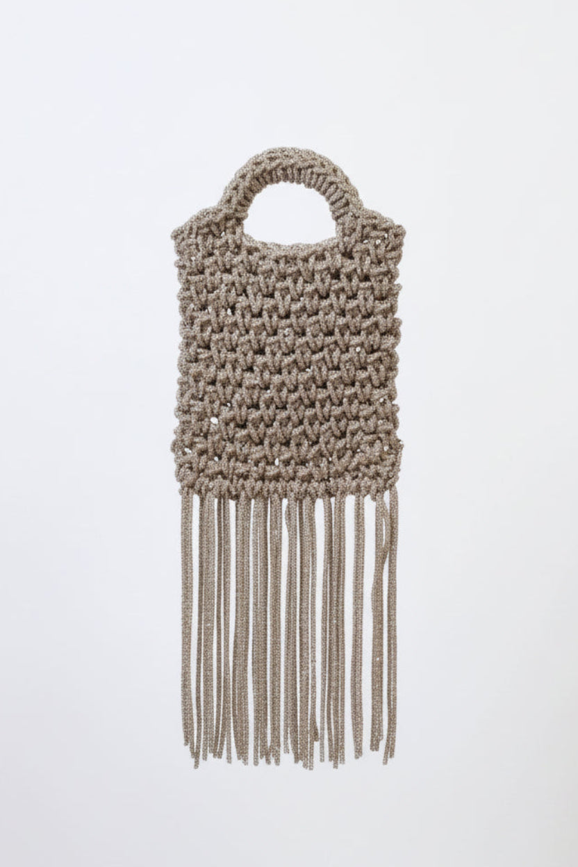 Realizzata a mano in pregiato cordino cristalli scintillanti, incarna l’equilibrio perfetto tra artigianalità e raffinatezza. Le frange morbide e leggere ondeggiano catturando lo sguardo a ogni passo. Un accessorio pensato per chi ama distinguersi con grazia e carattere, nelle sere in cui anche il dettaglio più piccolo racconta una storia.